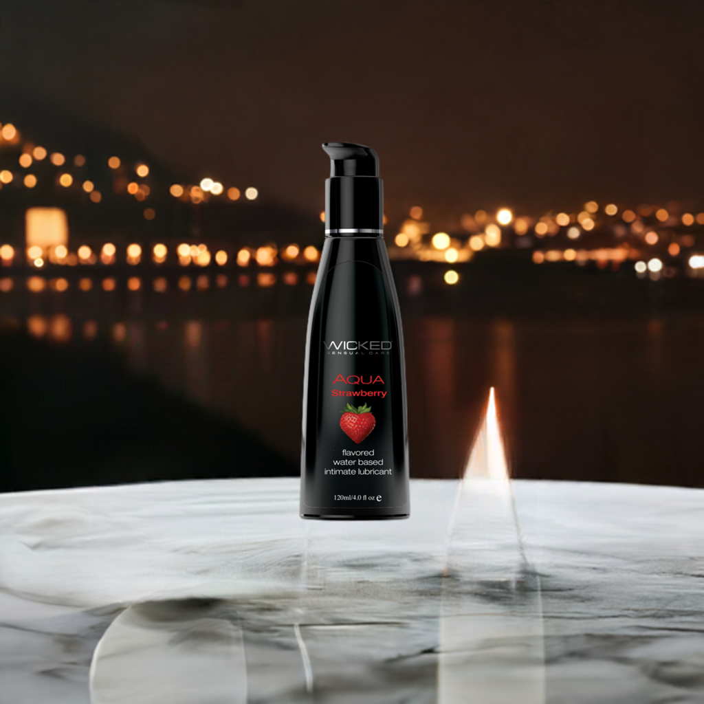 Bring Strawberries into the bedroom in a whole new way! Kissable, lickable, and delicious, Wicked Aqua Strawberry personal lubricant adds subtle and delicious natural flavors to enhance oral pleasures. Light and silky, this water-based formula is the perfect sensual combination of an elegant lubricant and a flavor sensation. Never sticky and without an aftertaste, Wicked Aqua Strawberry satisfies your sweet tooth and your intimate desires all in one amazing pleasure product. Oral sex never tasted so good. Whether you are giving or receiving, our flavors will give you a new sexy confidence.