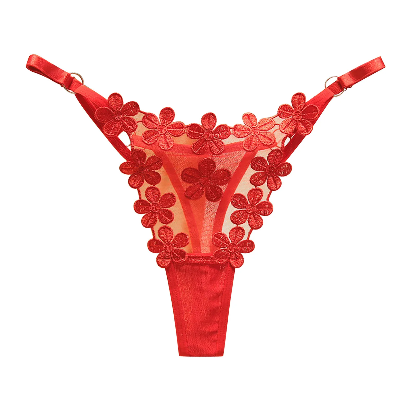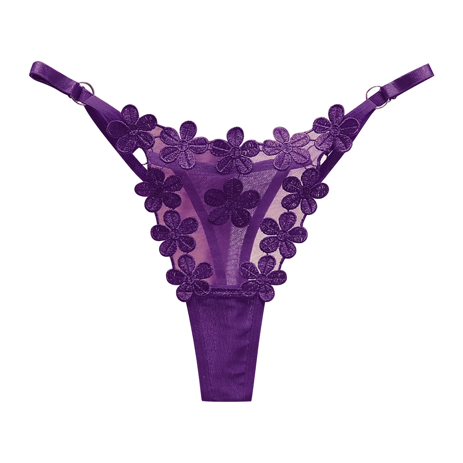 Sexy Adjustable Mesh G-String β Sweet Flower Embroidery